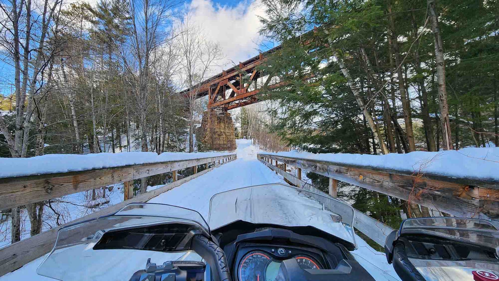 Railroad bed conditions were 6.5/10. There was some exposed rail in places and you could see it just under the snow on others, but you were still able to ride at speed most of the way up to Plymouth.