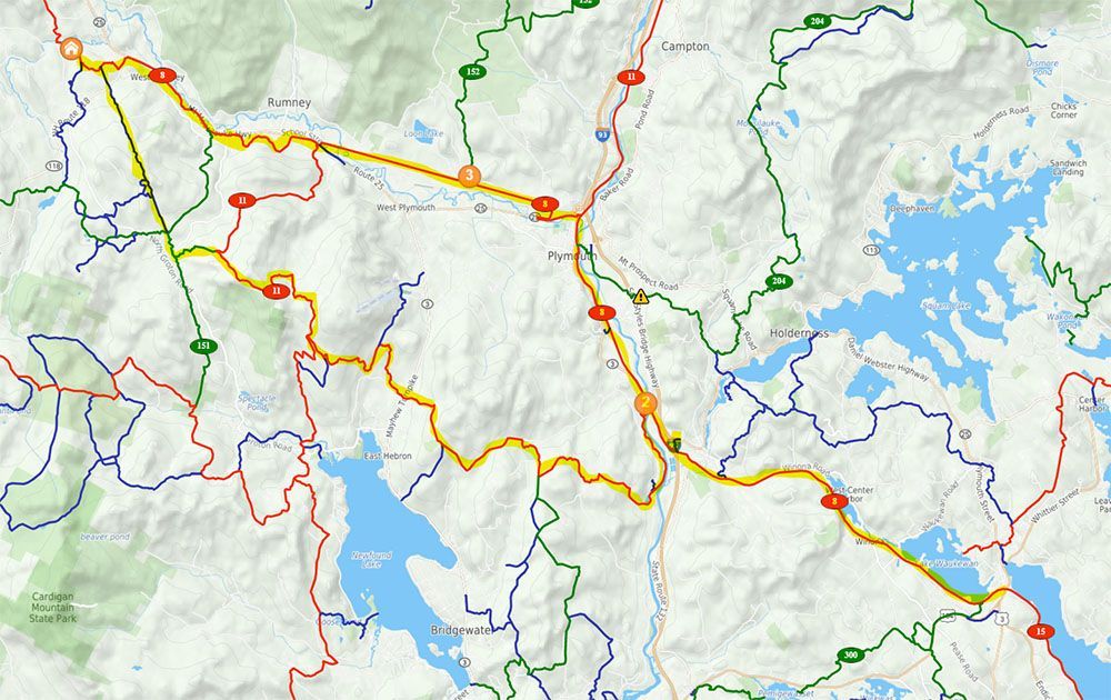 Hopping off 151 and into the mountains, the route was 11>24>8. The trails through Rumney and up into the beginning of Hardy Country were excellent, particulary higher up. After that, the water bars started…and there were some big ones all the way through 24. With the cold temps rolling in, the clubs will be able to remedy this, but as many of you know, temps have been 10 degrees above average and the ground hasn’t been able to freeze. Hopefully the sub zero temps coming this weekend will take care of that so the groomers can work their magic.