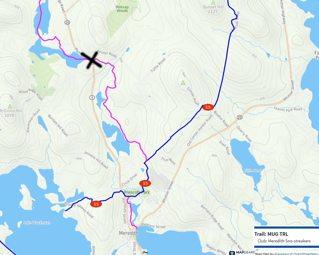 There is a closure on The Mug Trail at the Rte 25/3 road crossing at the Center Harbor Meeting House. The trail itself is open from Meredith to The Mug restaurant, but there is no access from the Squam side. We know this a pretty rough closure for a lot people but rest assure we are working on a solution.